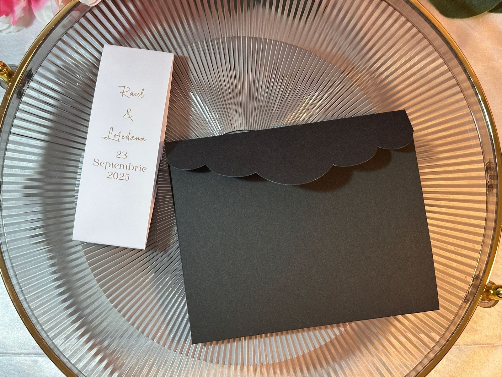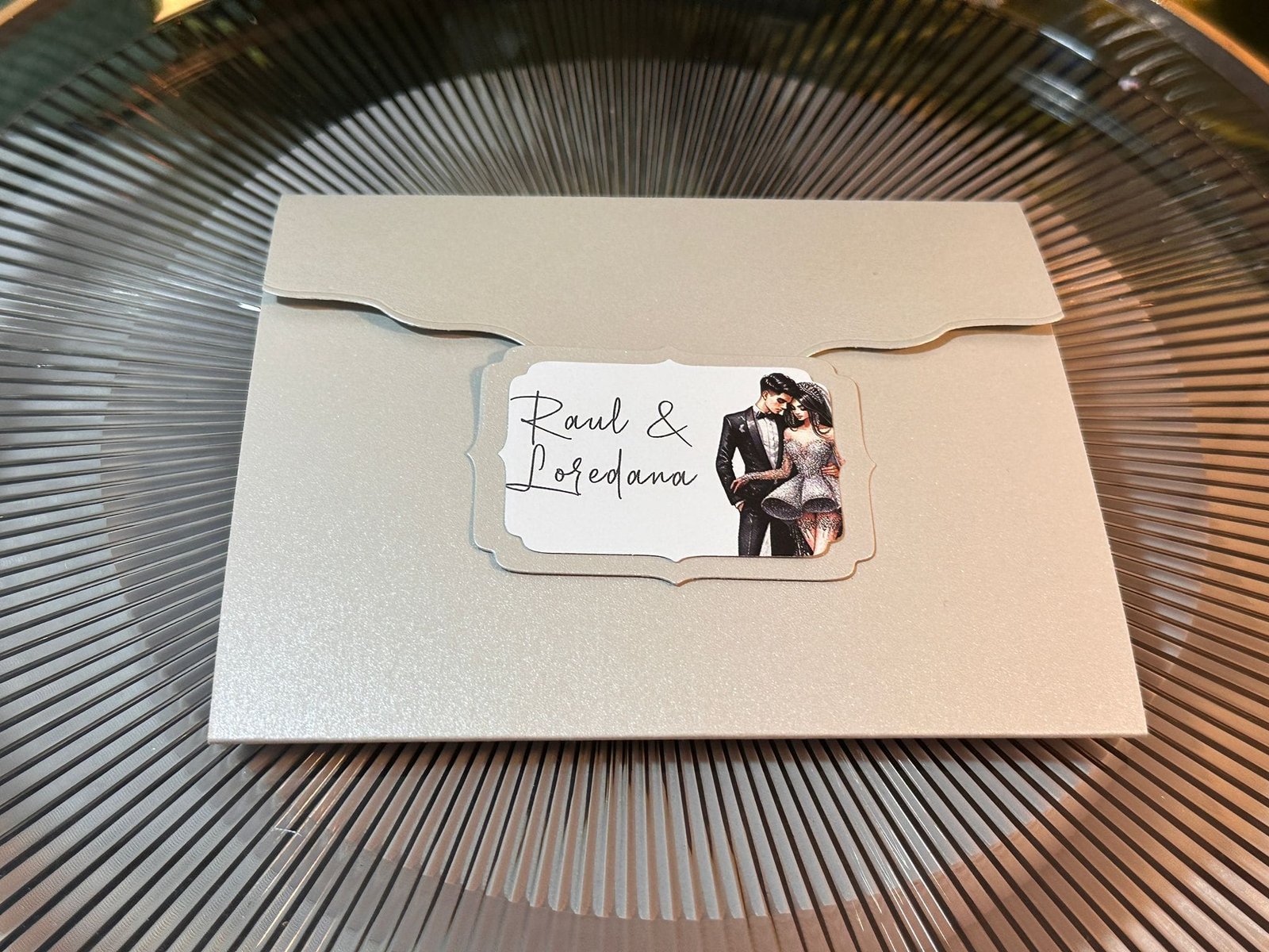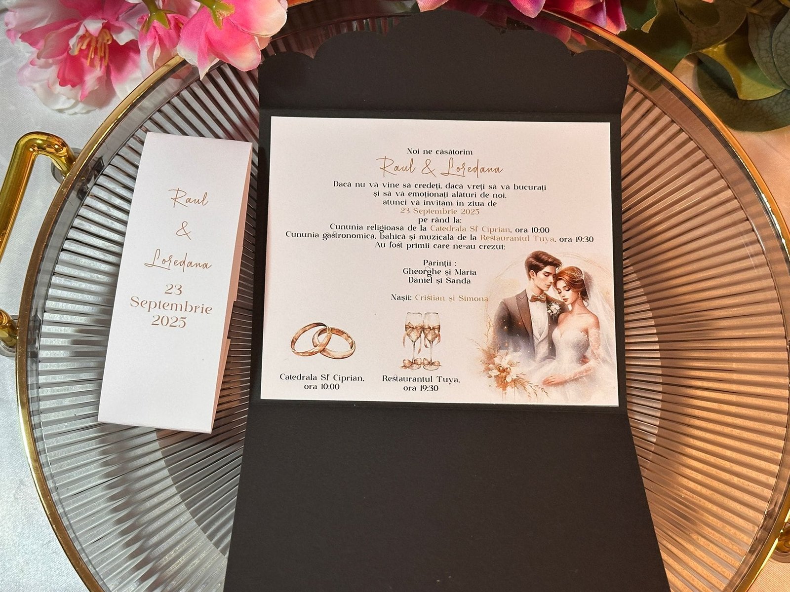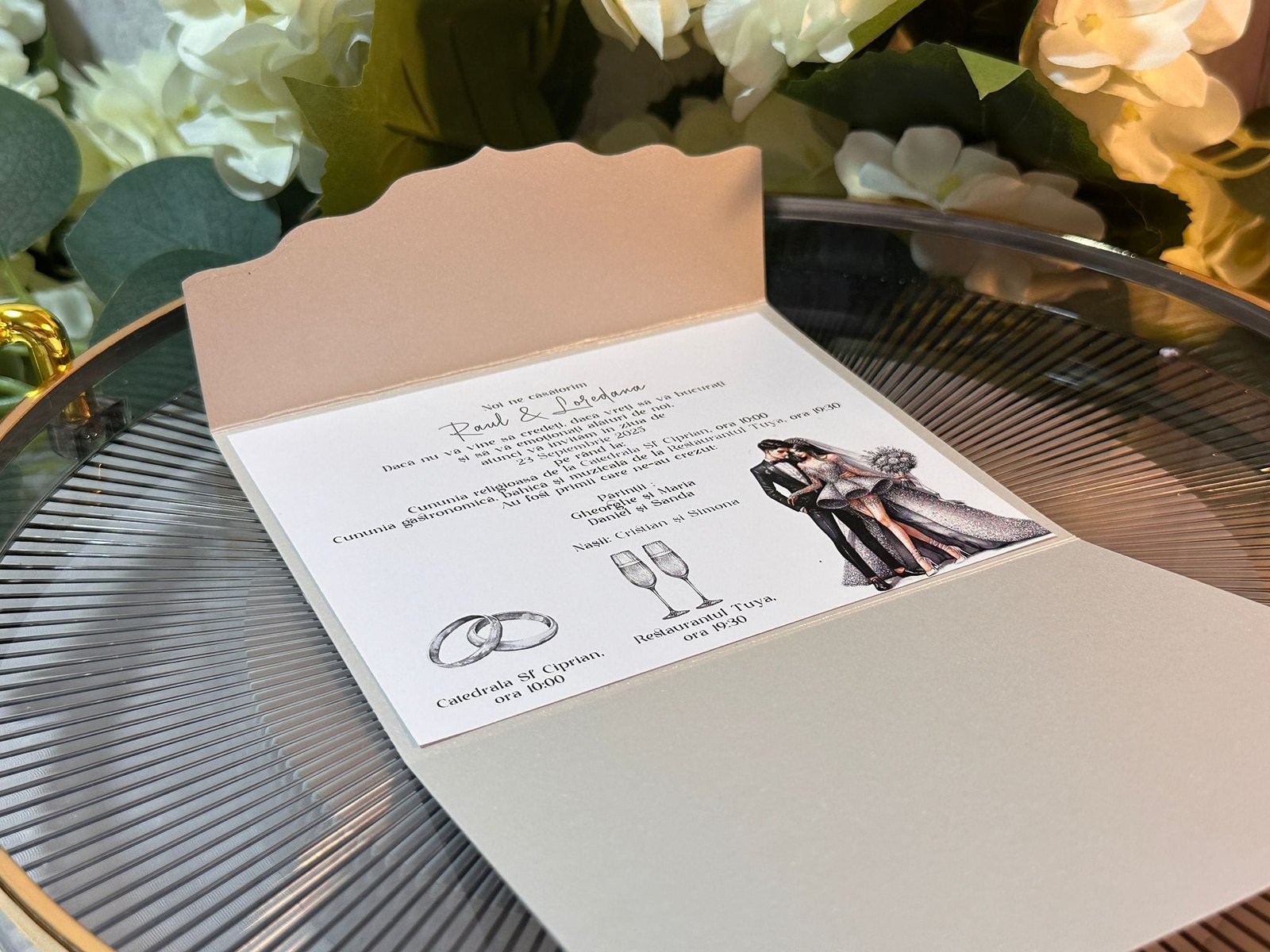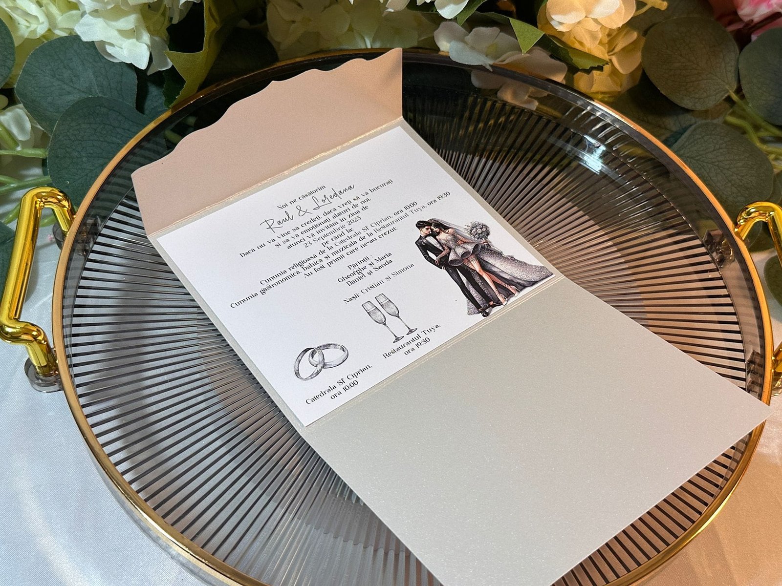 Invitație de nuntă luxoasă din carton sidefat auriu