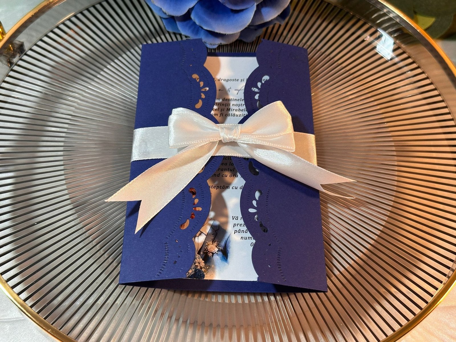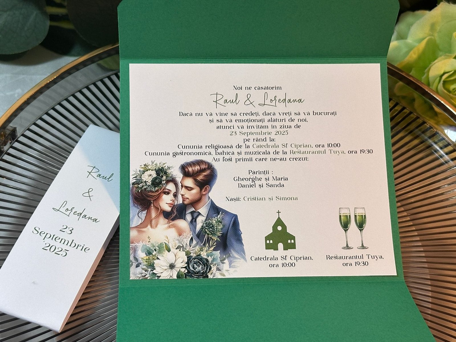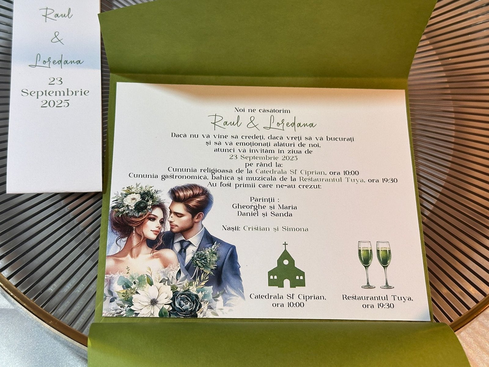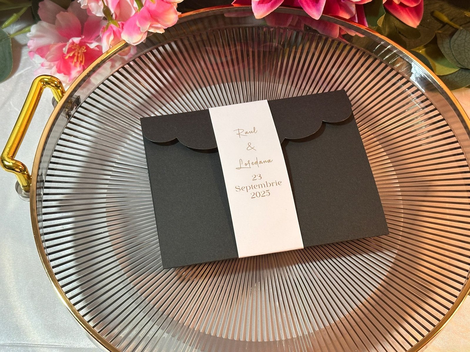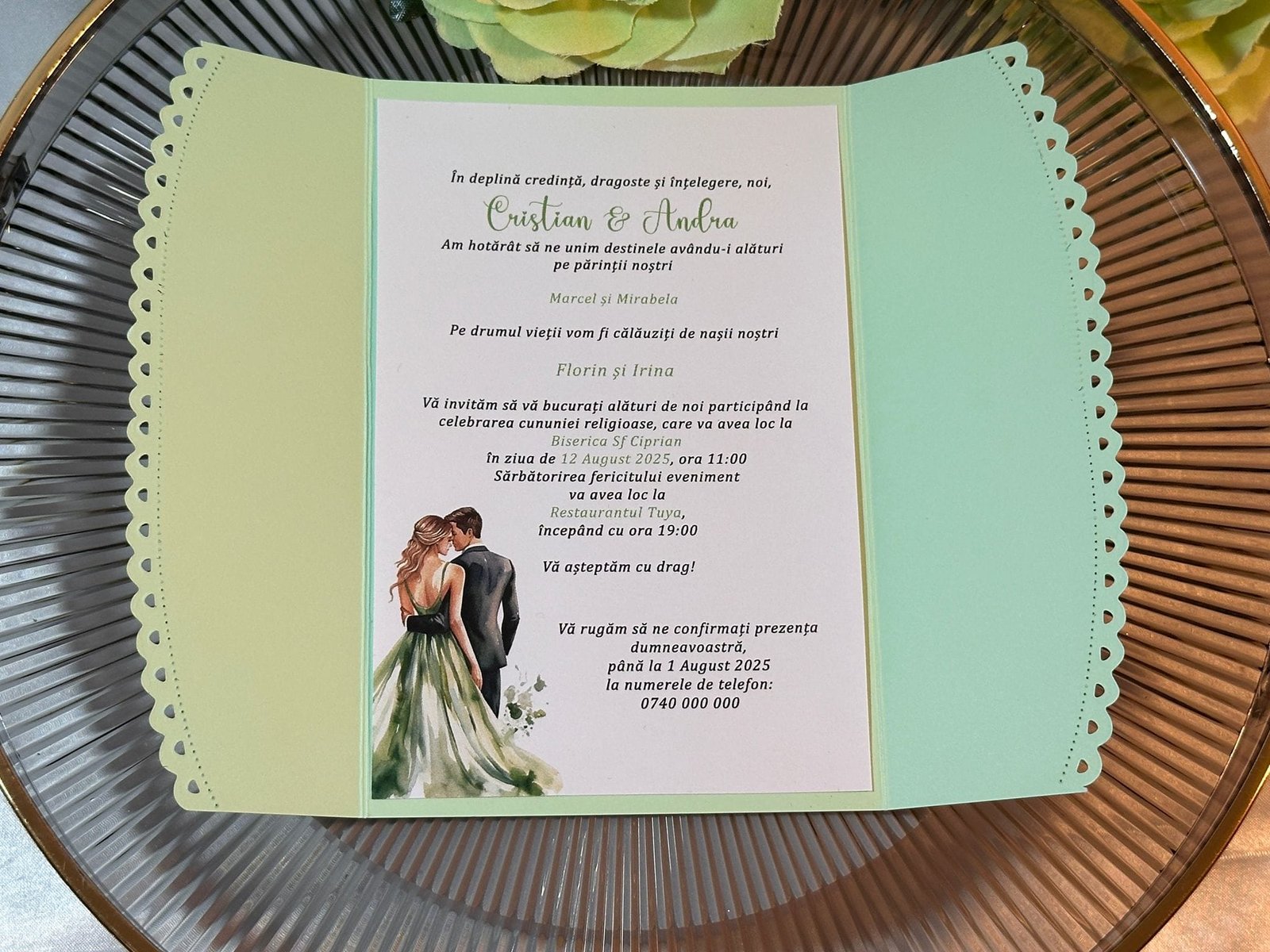 Invitație de nuntă luxoasă din carton sidefat auriu