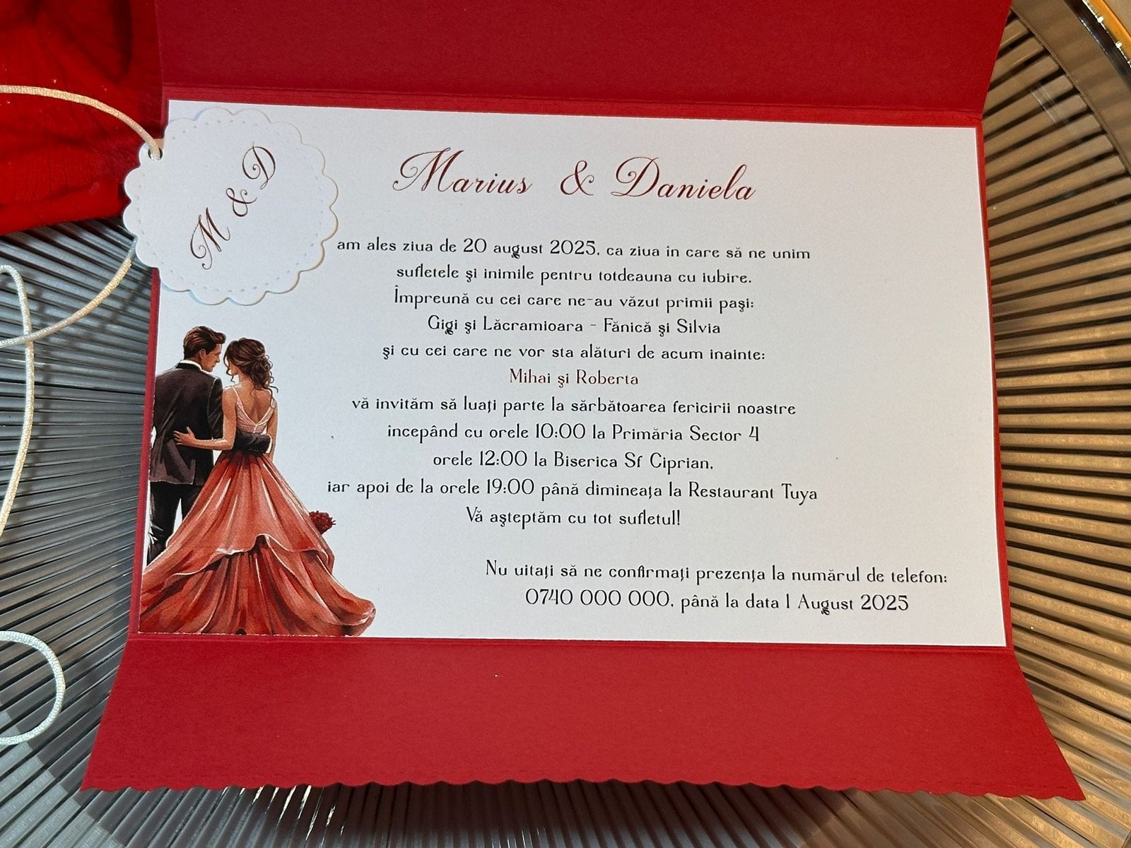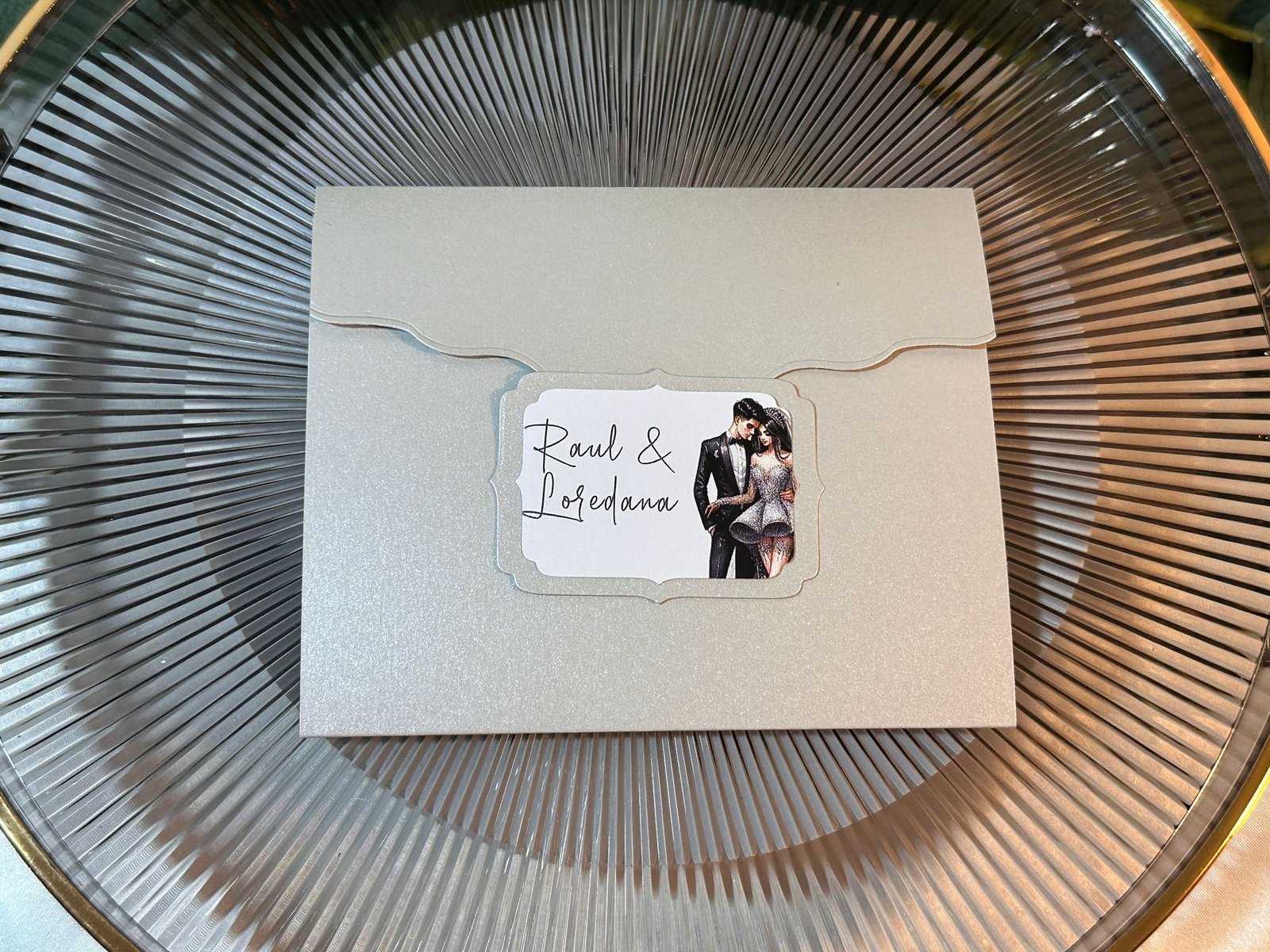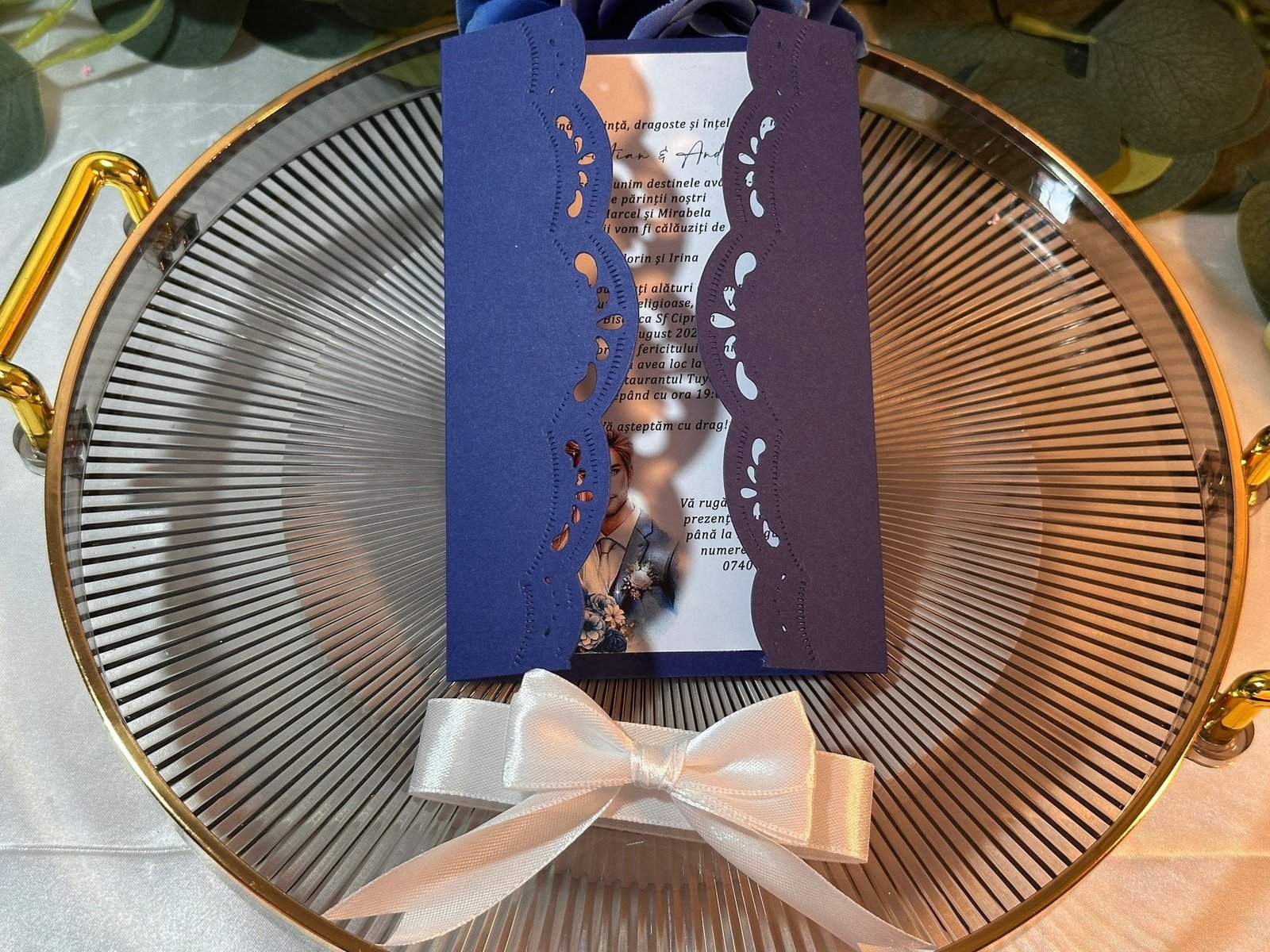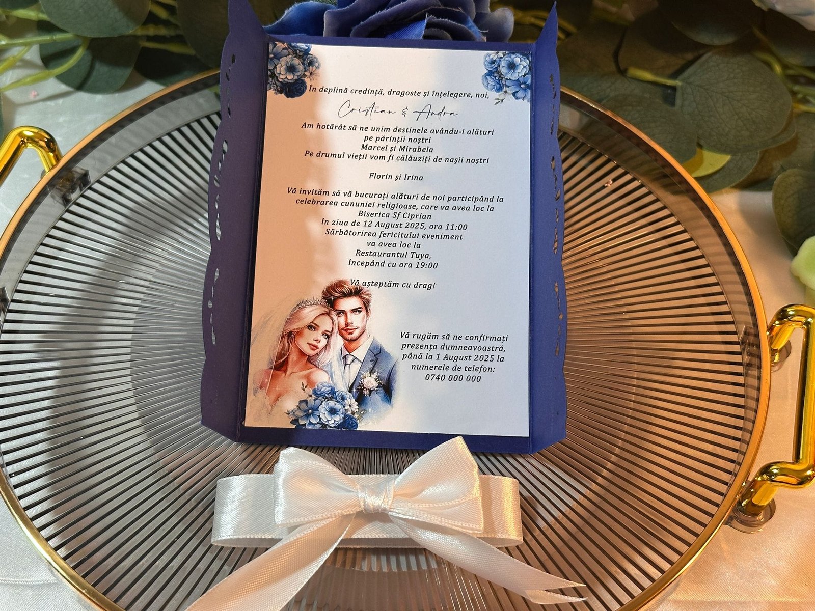 Invitație de nuntă luxoasă din carton sidefat auriu