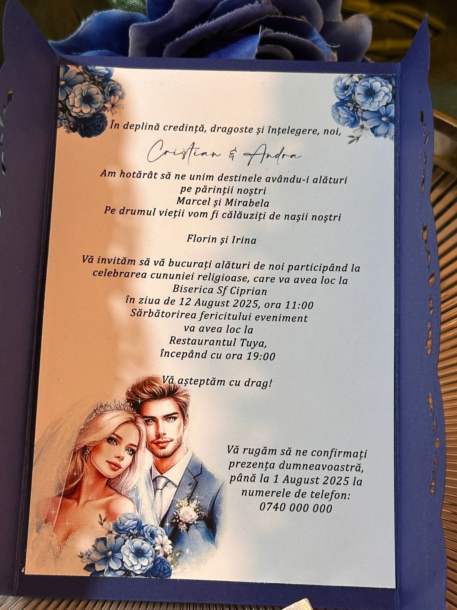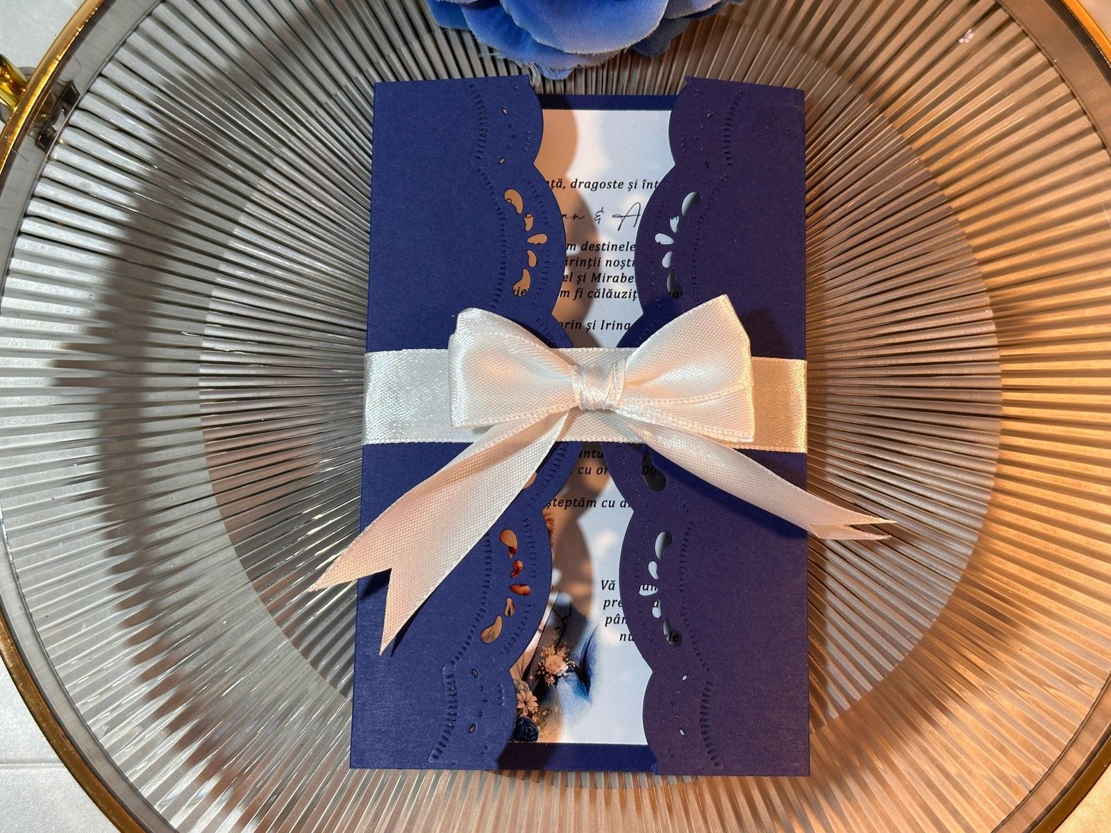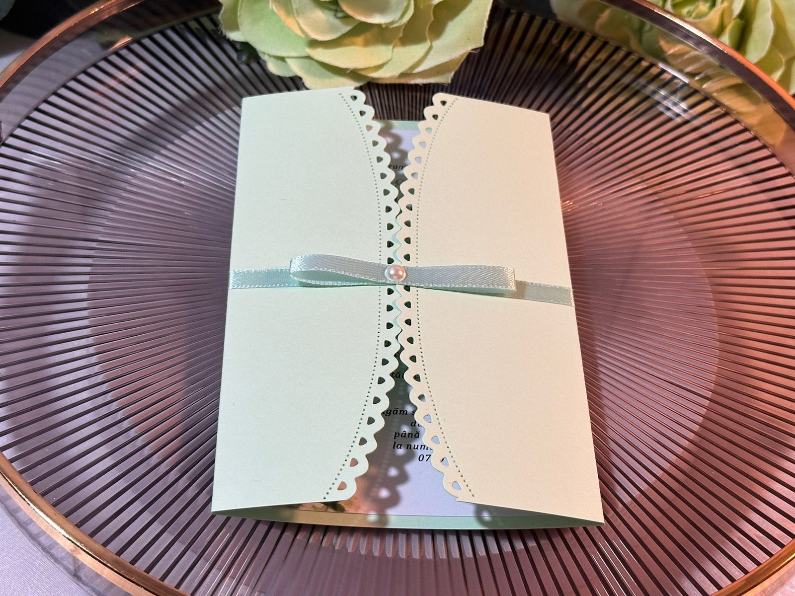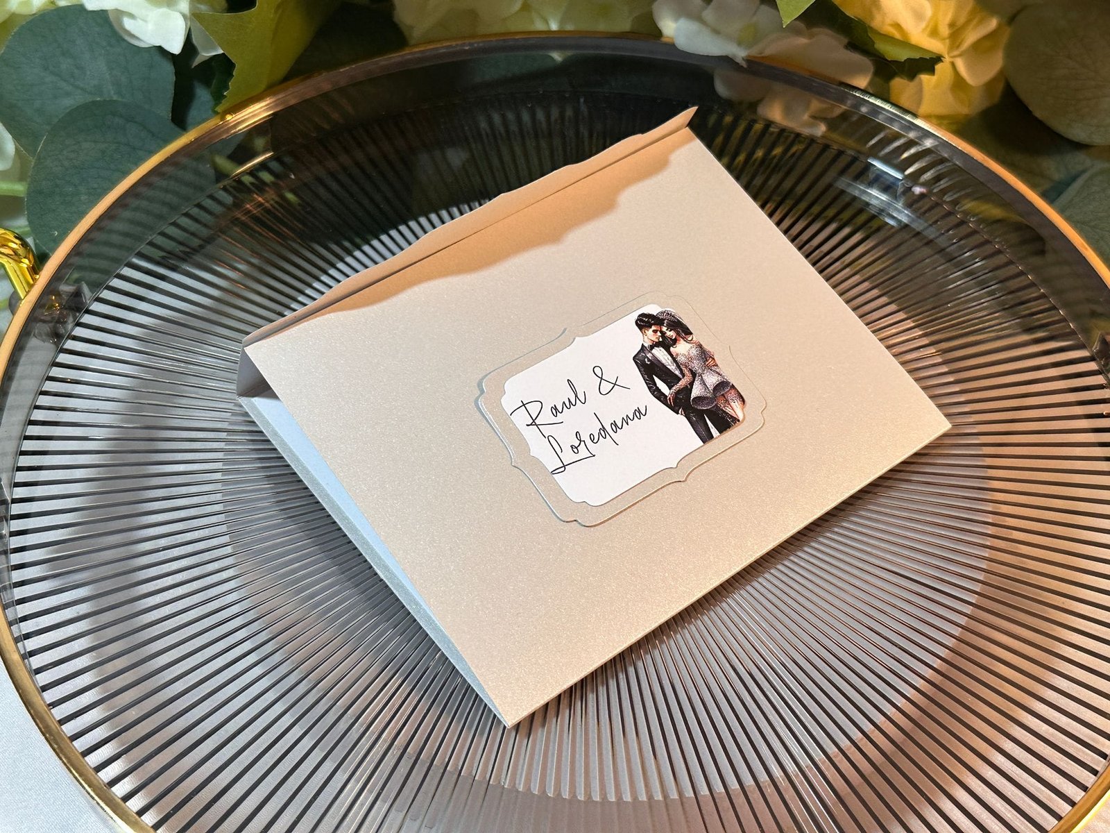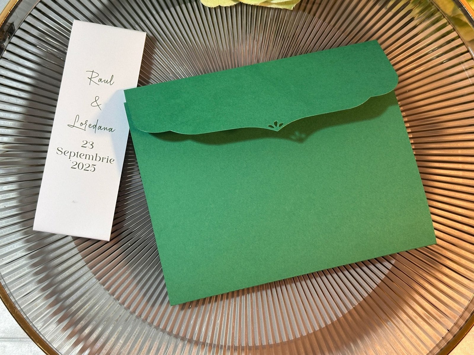 Invitație de nuntă luxoasă din carton sidefat auriu