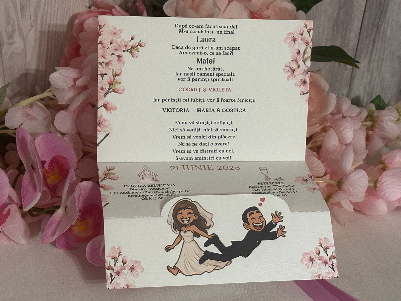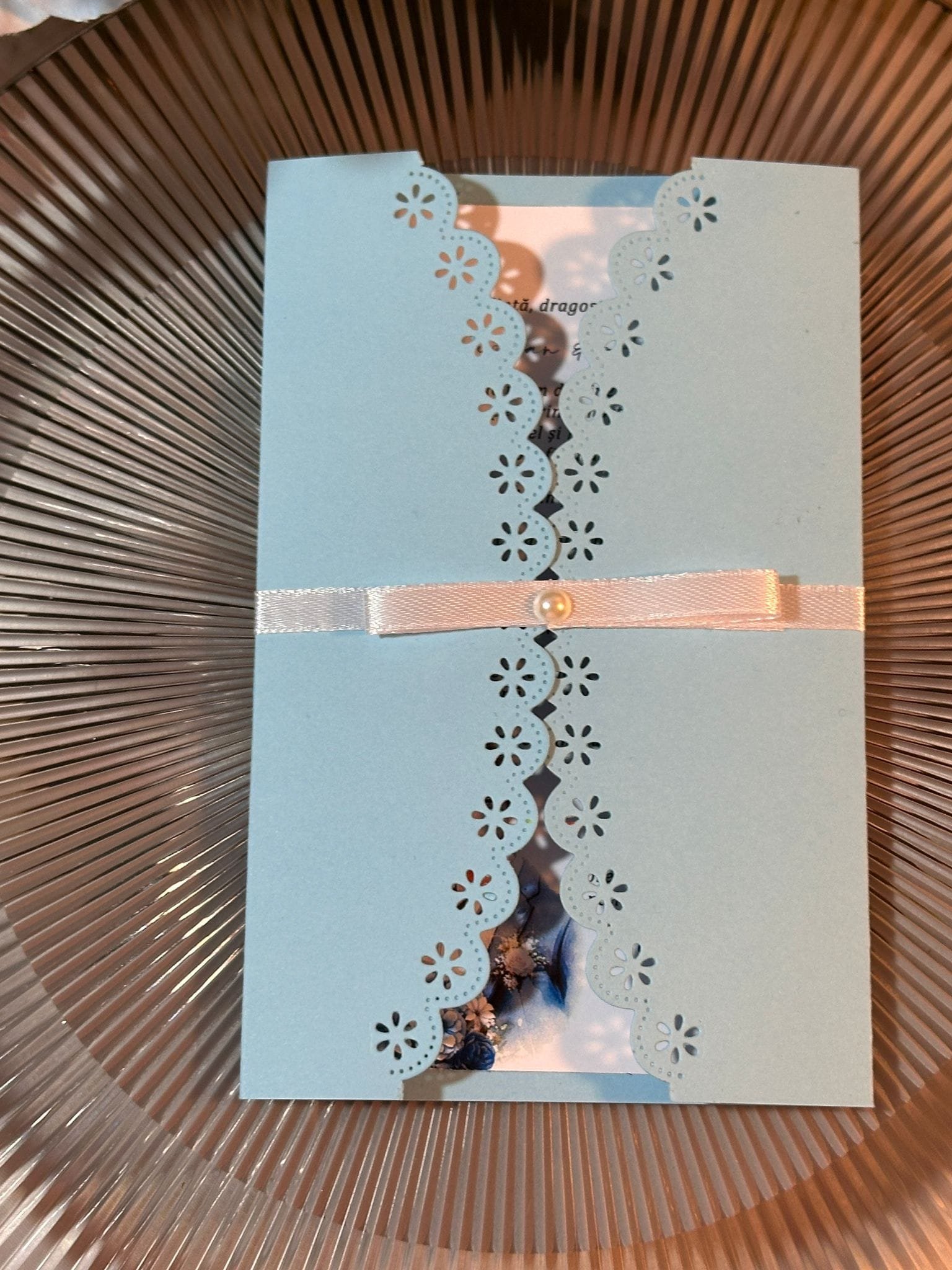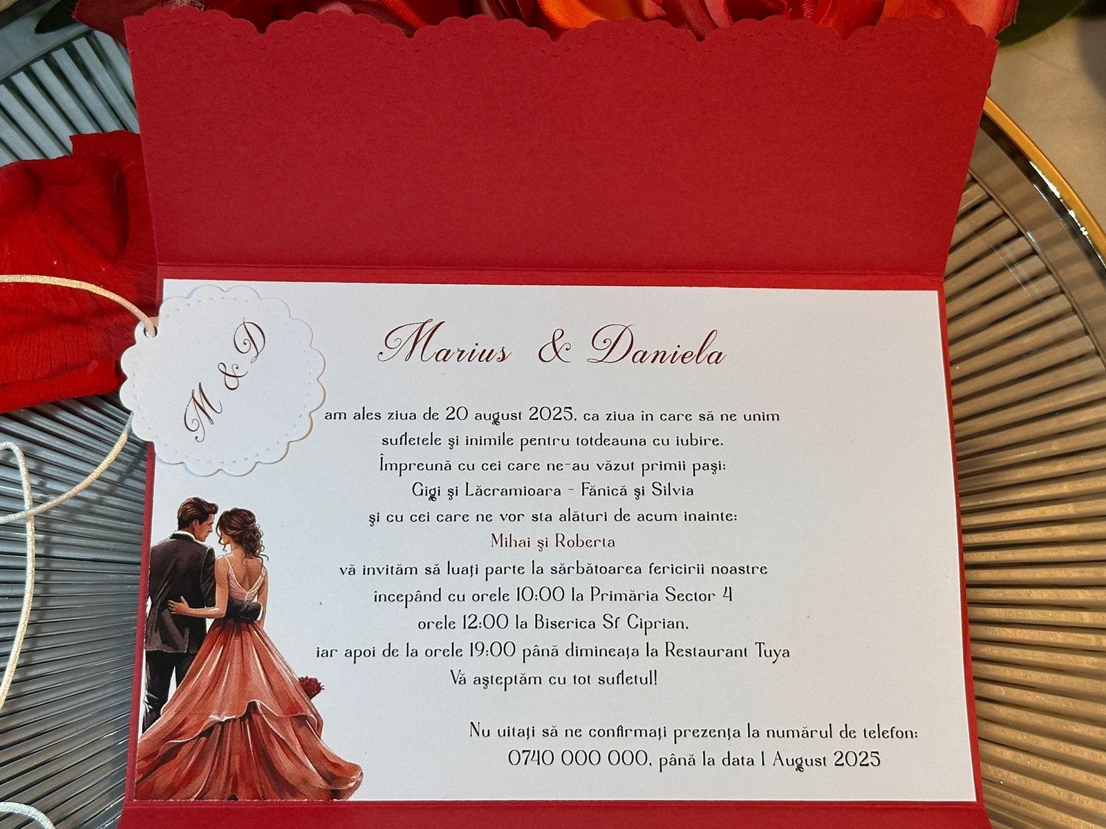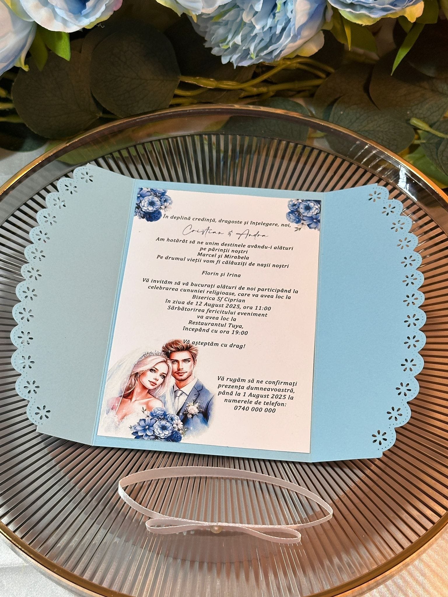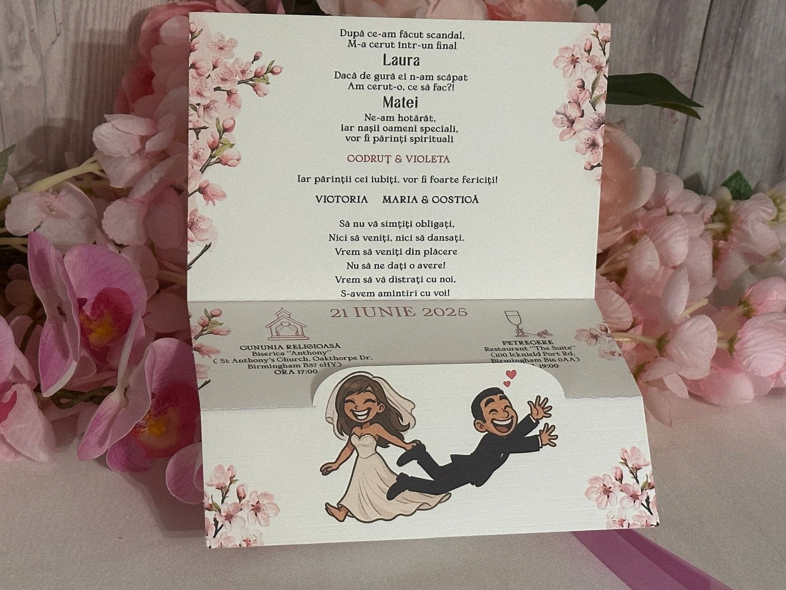 Invitație de nuntă luxoasă din carton sidefat auriu