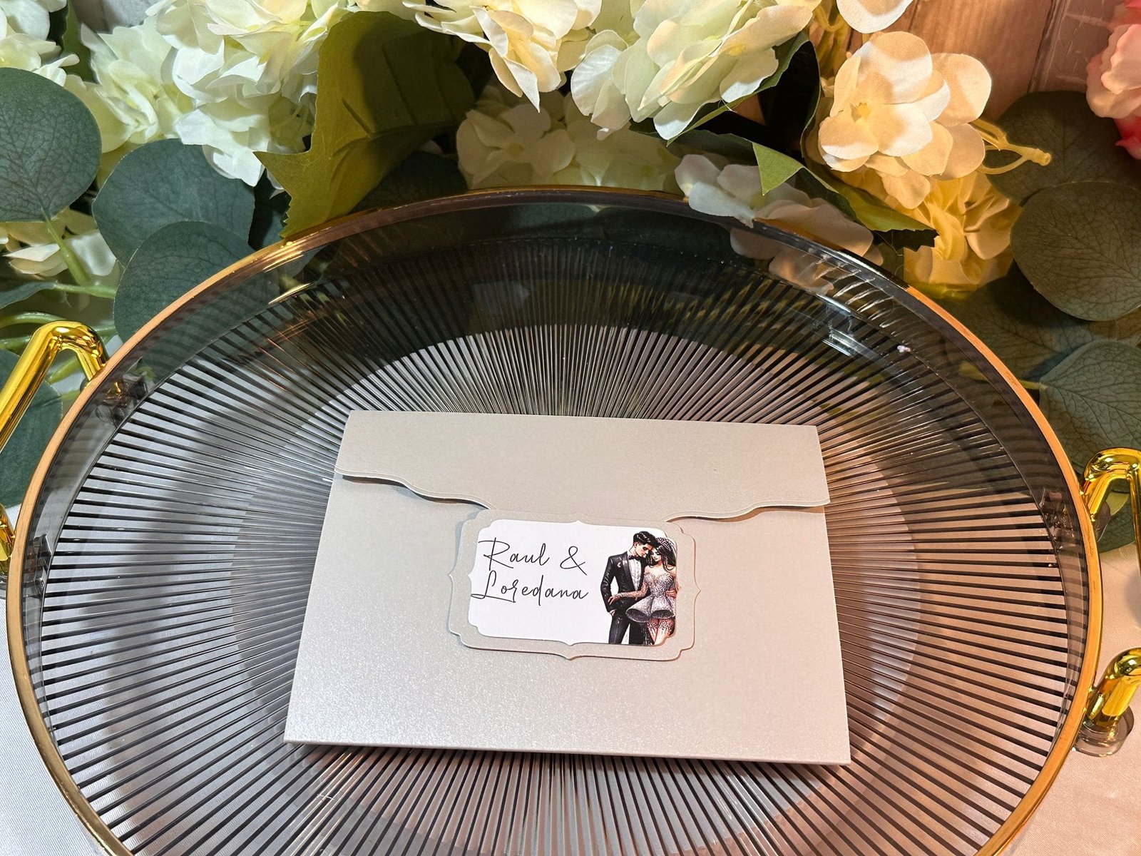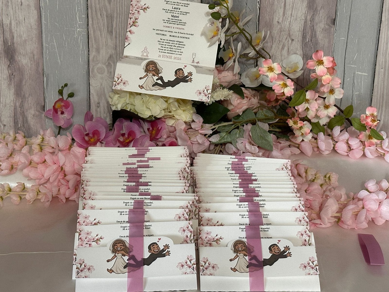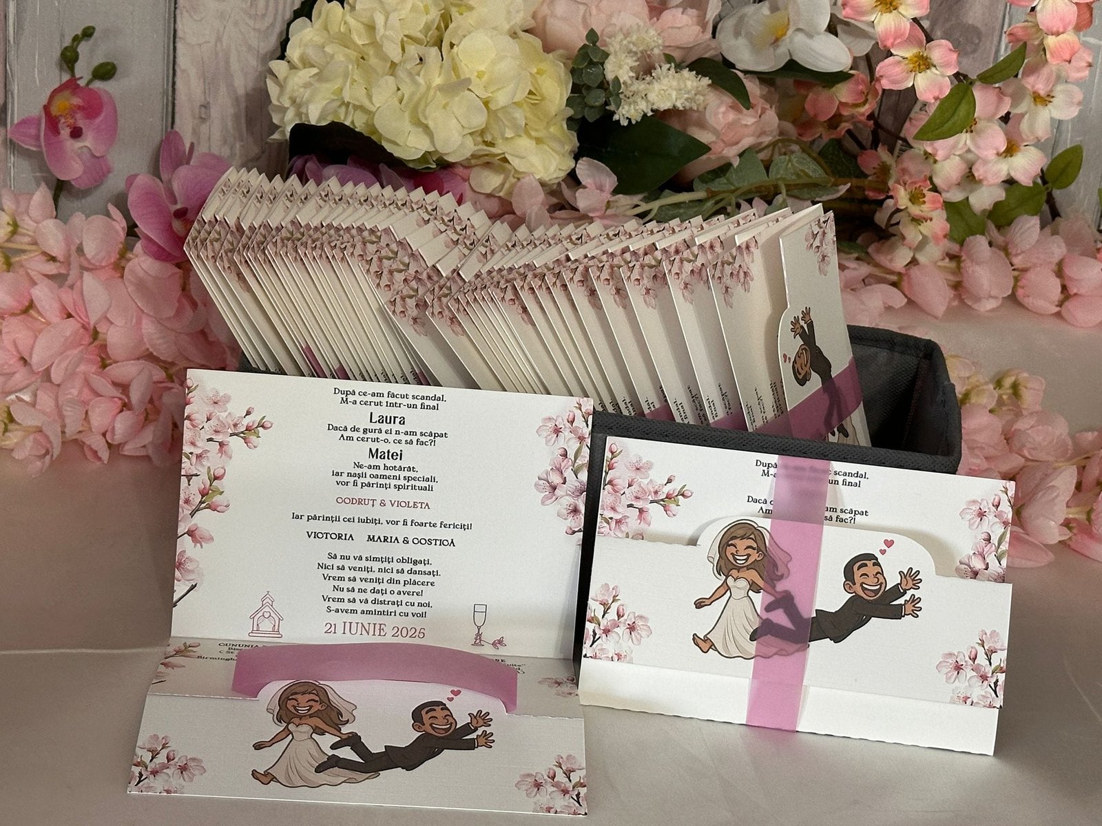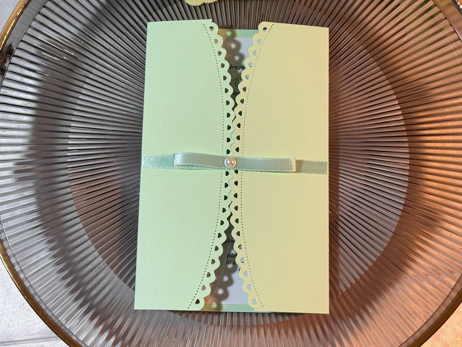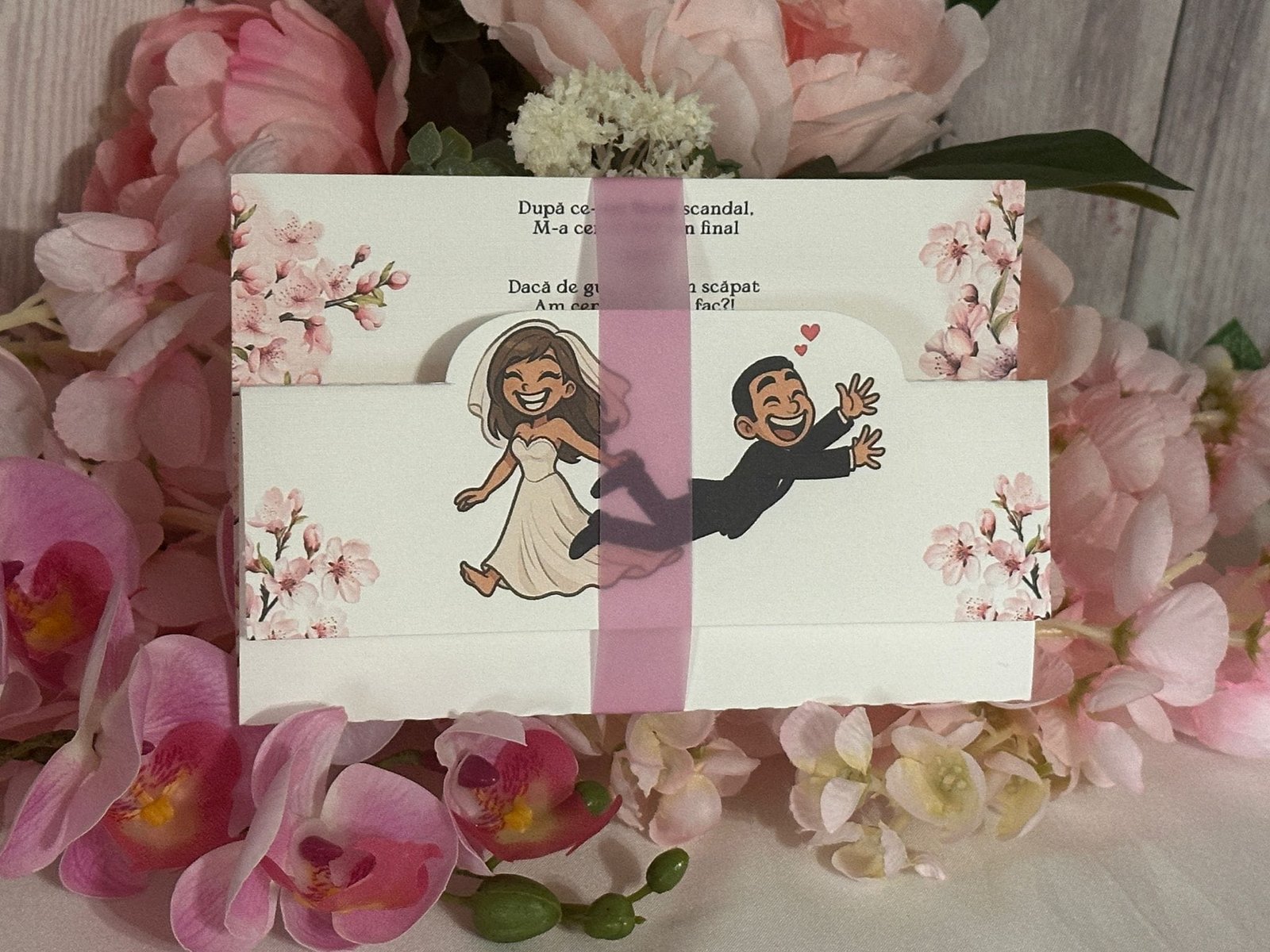Invitație de nuntă luxoasă din carton sidefat auriu