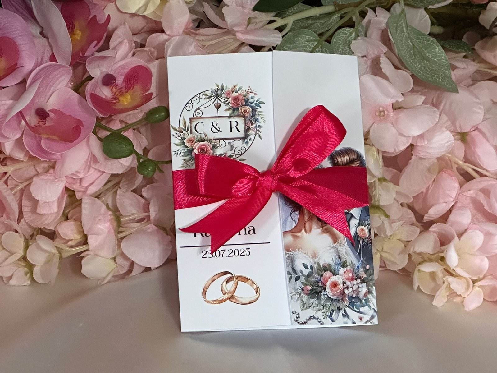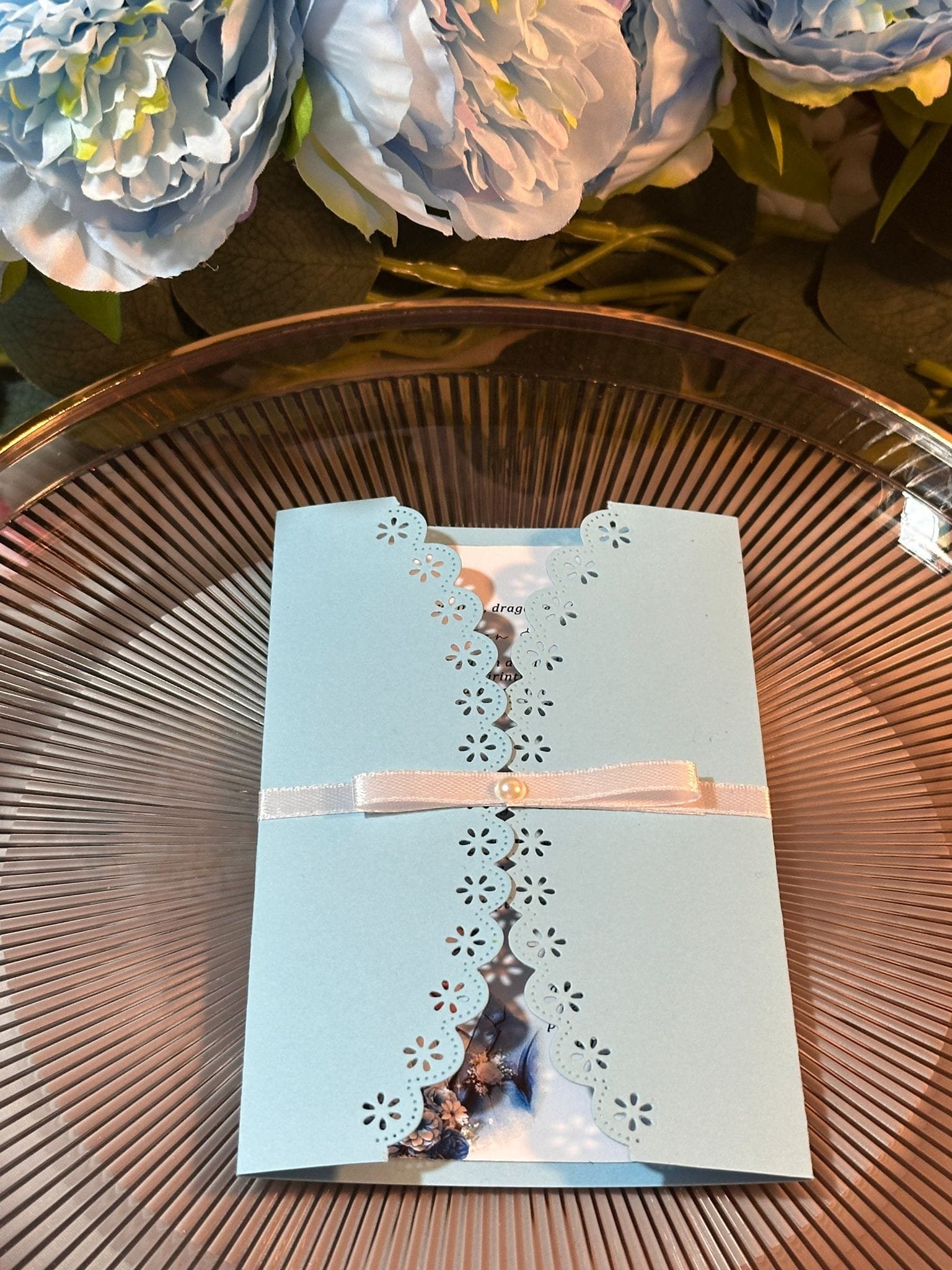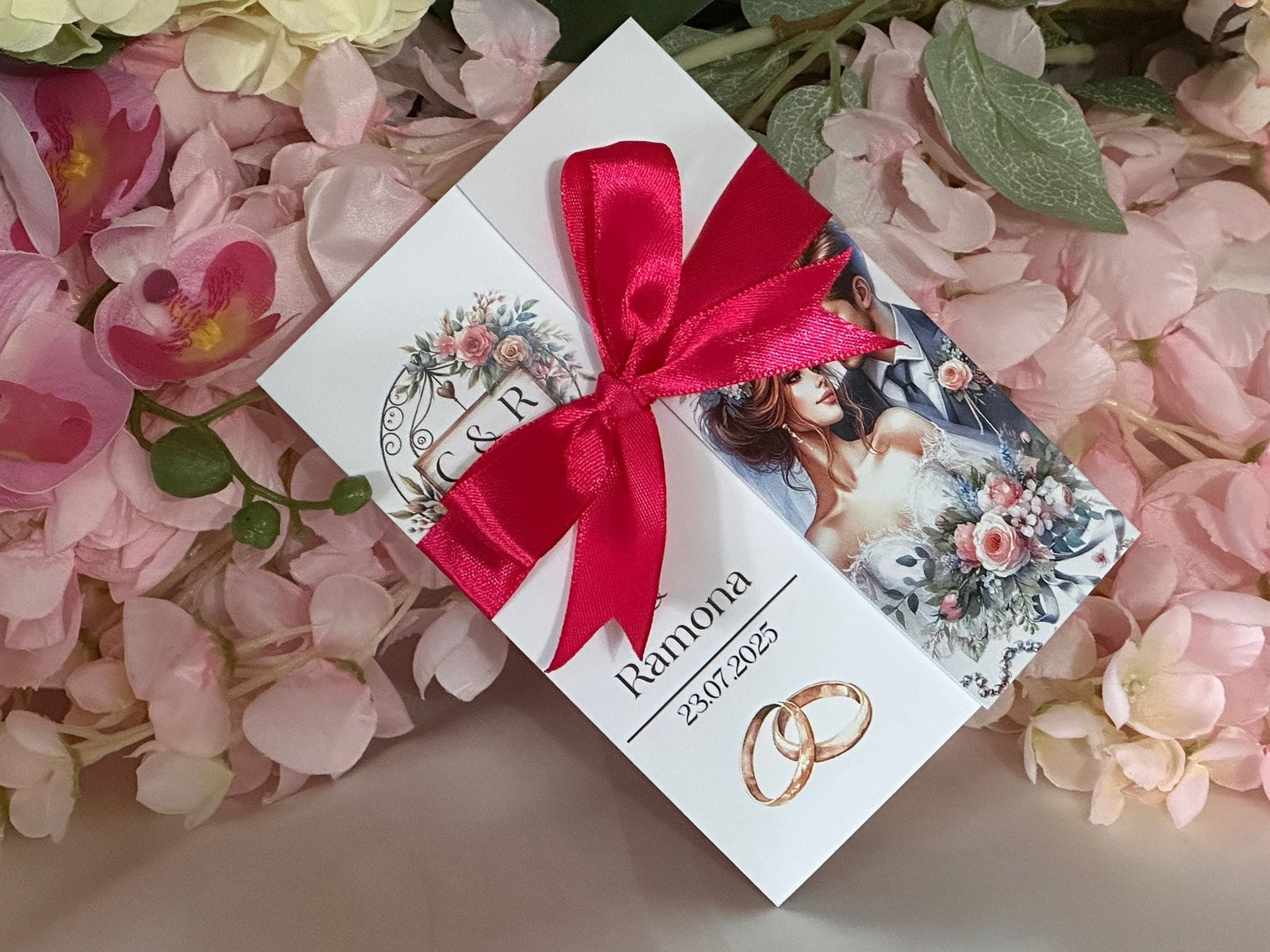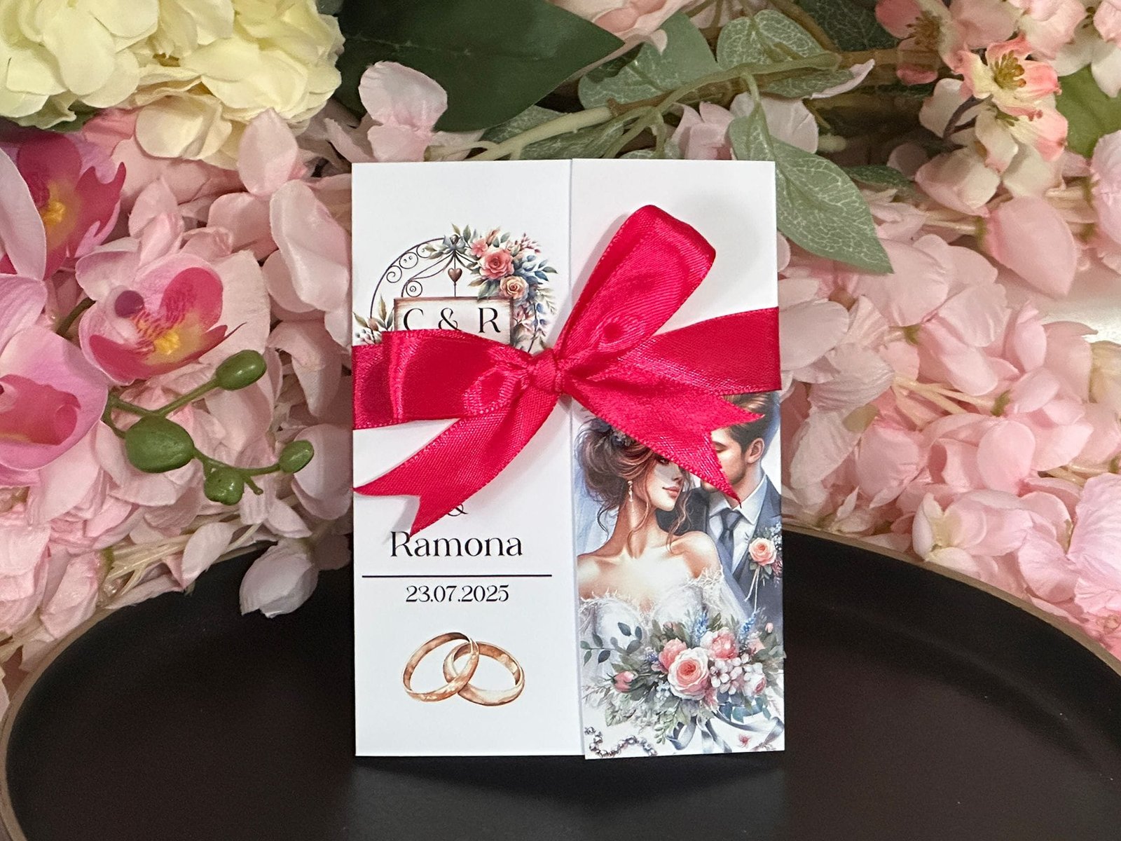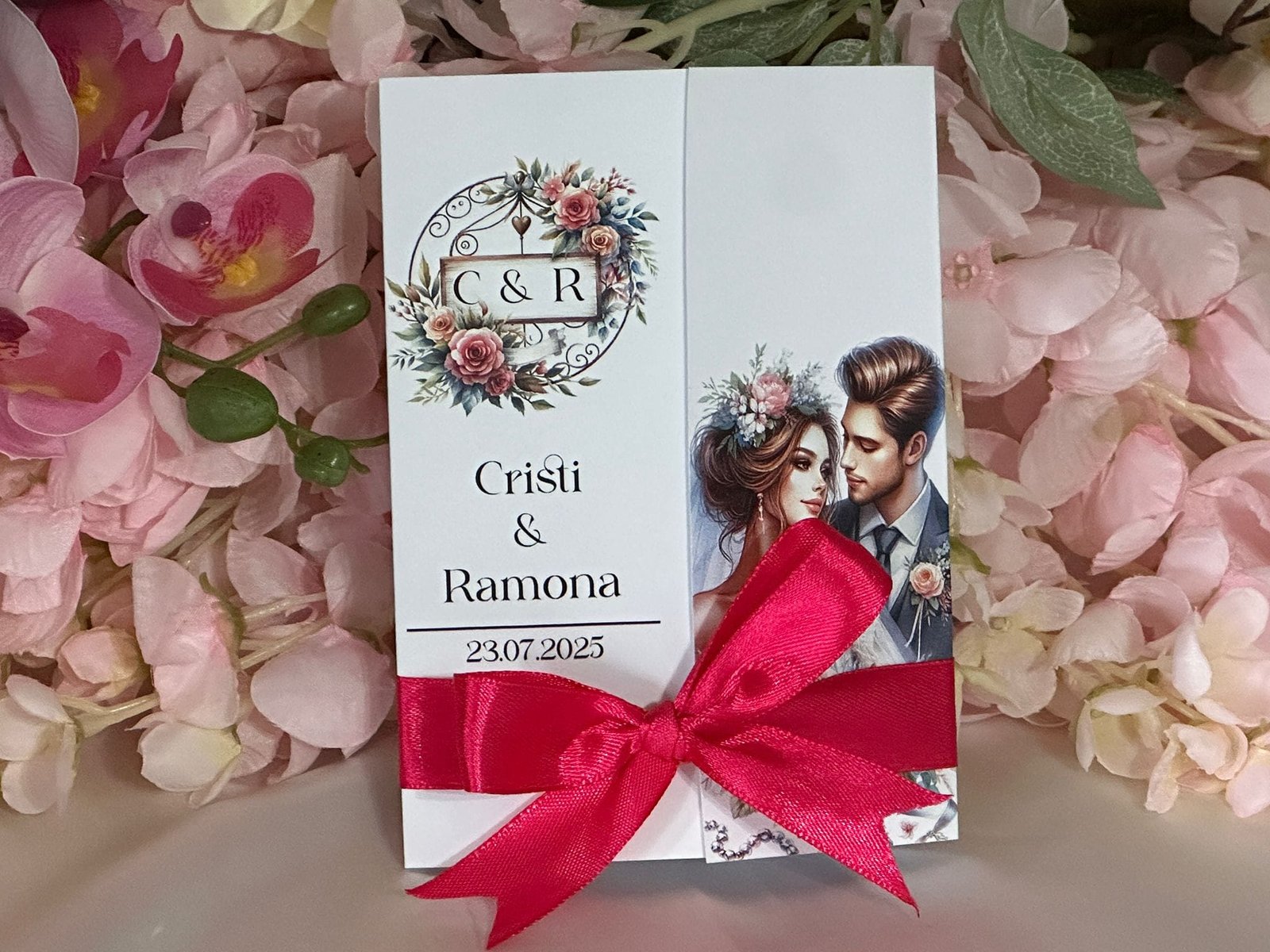 Invitație de nuntă luxoasă din carton sidefat auriu