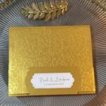 - Material: premium pearlescent cardstock, gold shade, with embossed pattern
