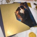 C) Textul sau designul aurit dă un plus de eleganță, bun gust. Se realizează manual cu folie aurie, argintie sau roz-auriu (cupru)