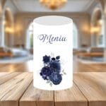 Meniul pentru nuntă poate fi personalizat de la zero cu numele mirilor și un citat de dragoste, se poate combina ca fiind 2 în 1, meniu și număr de masă.