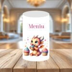 Meniul pentru botez poate fi personalizat de la zero cu numele bebelușului și un citat de familie, se poate combina ca fiind 2 în 1, meniu și număr de masă.