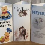 Meniurile de botez sunt realizate manual din carton de 250-300g și se personalizează de la zero, designul/tematica se realizează ținând cont de toate detaliile clientului.