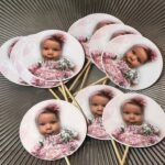 Oferă un plus de farmec deserturilor tale cu aceste mini propsuri personalizate, ideali pentru botezuri, aniversări sau petreceri tematice. Realizați pe carton lucios de calitate, cu bețișor din lemn și print color de înaltă rezoluție, aceștia pot fi personalizați cu fotografia copilului și design floral elegant în nuanțe de roz. Perfect pentru candy bar, brioșe, torturi sau aranjamente dulci.