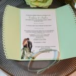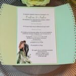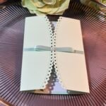 Mint green wedding invitation with cut edges